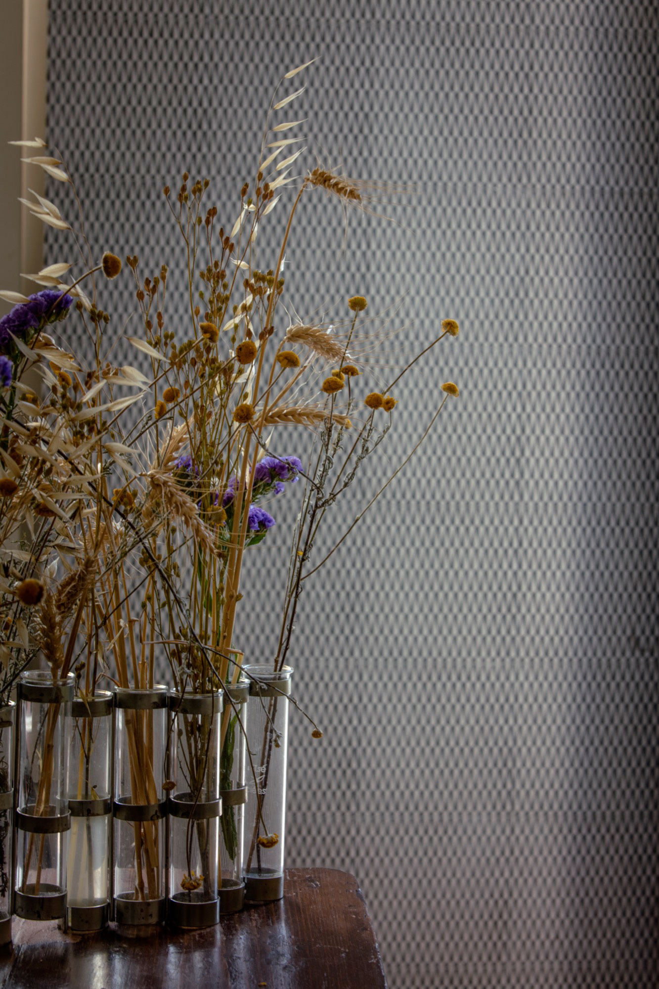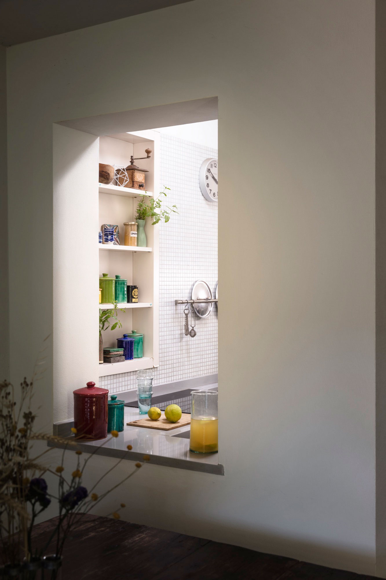 La finitura a base calce dona una luminosità diffusa e morbida agli ambienti, riflettendo la rigogliosa atmosfera esterna.
