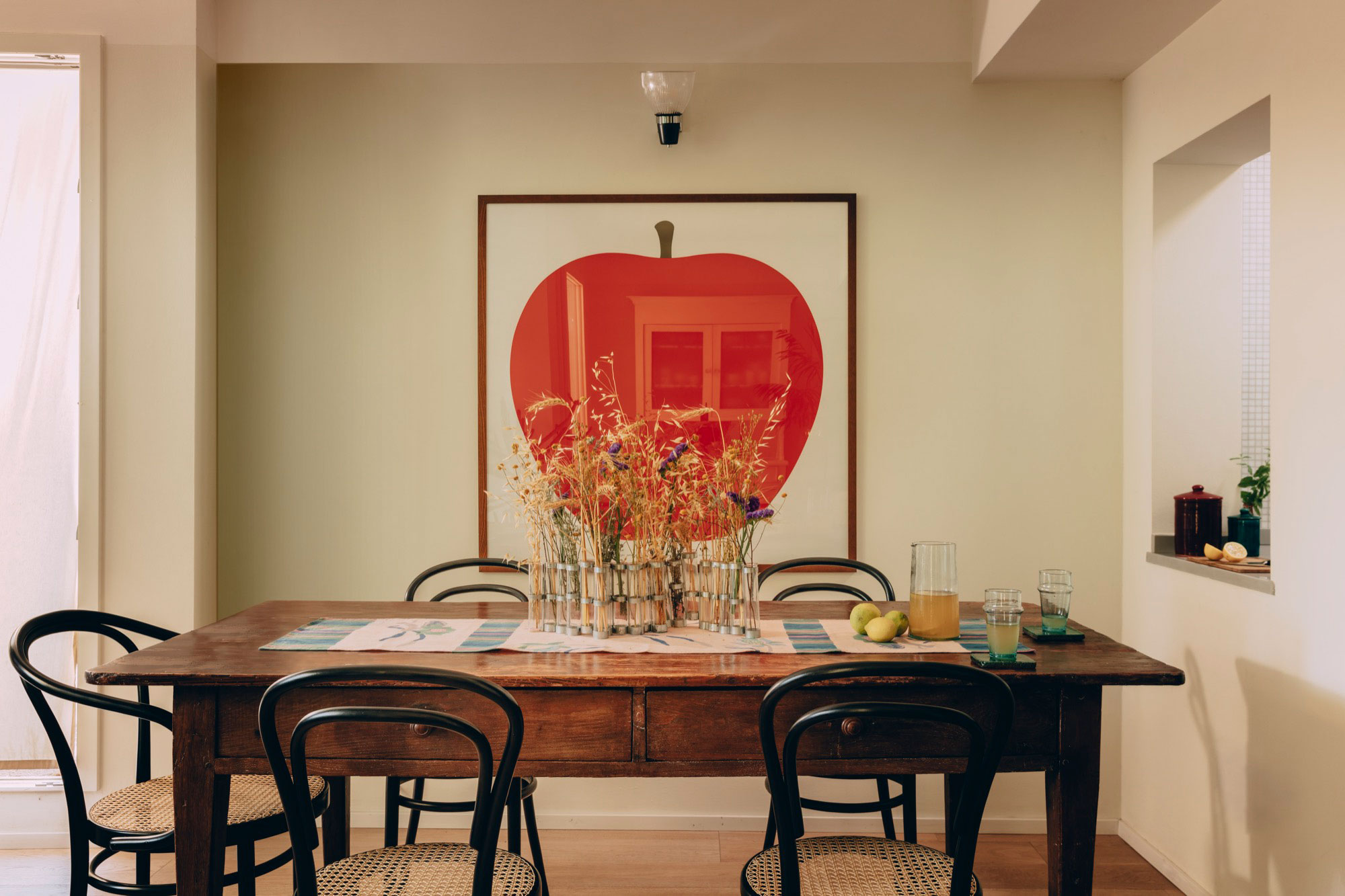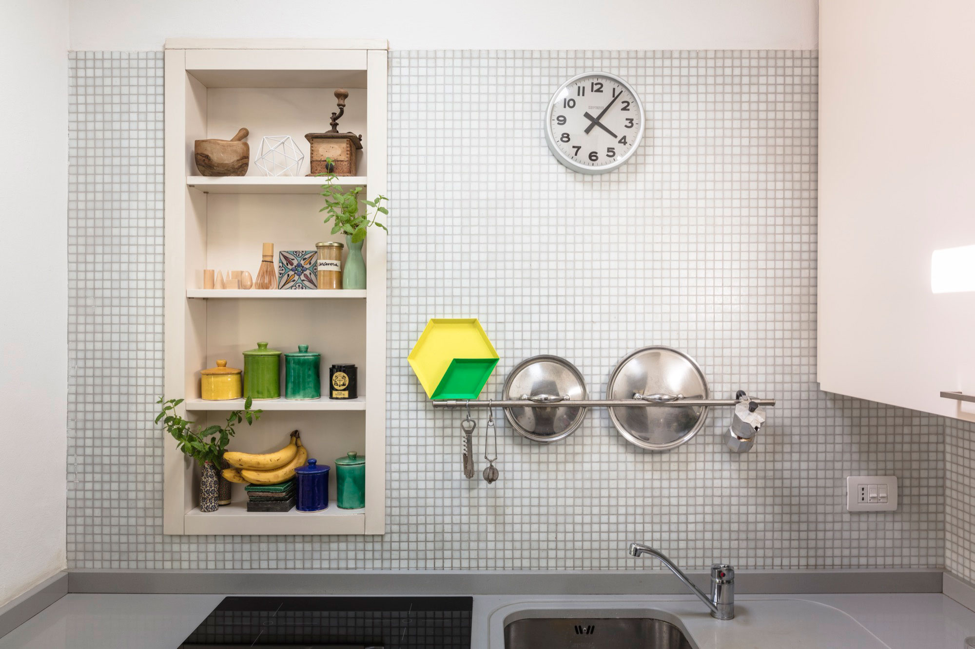 L’arredo alterna vecchi mobili di famiglia a pezzi anni ’50, e viene completato dall’arredo su misura, che ottimizza gli spazi in modo discreto.