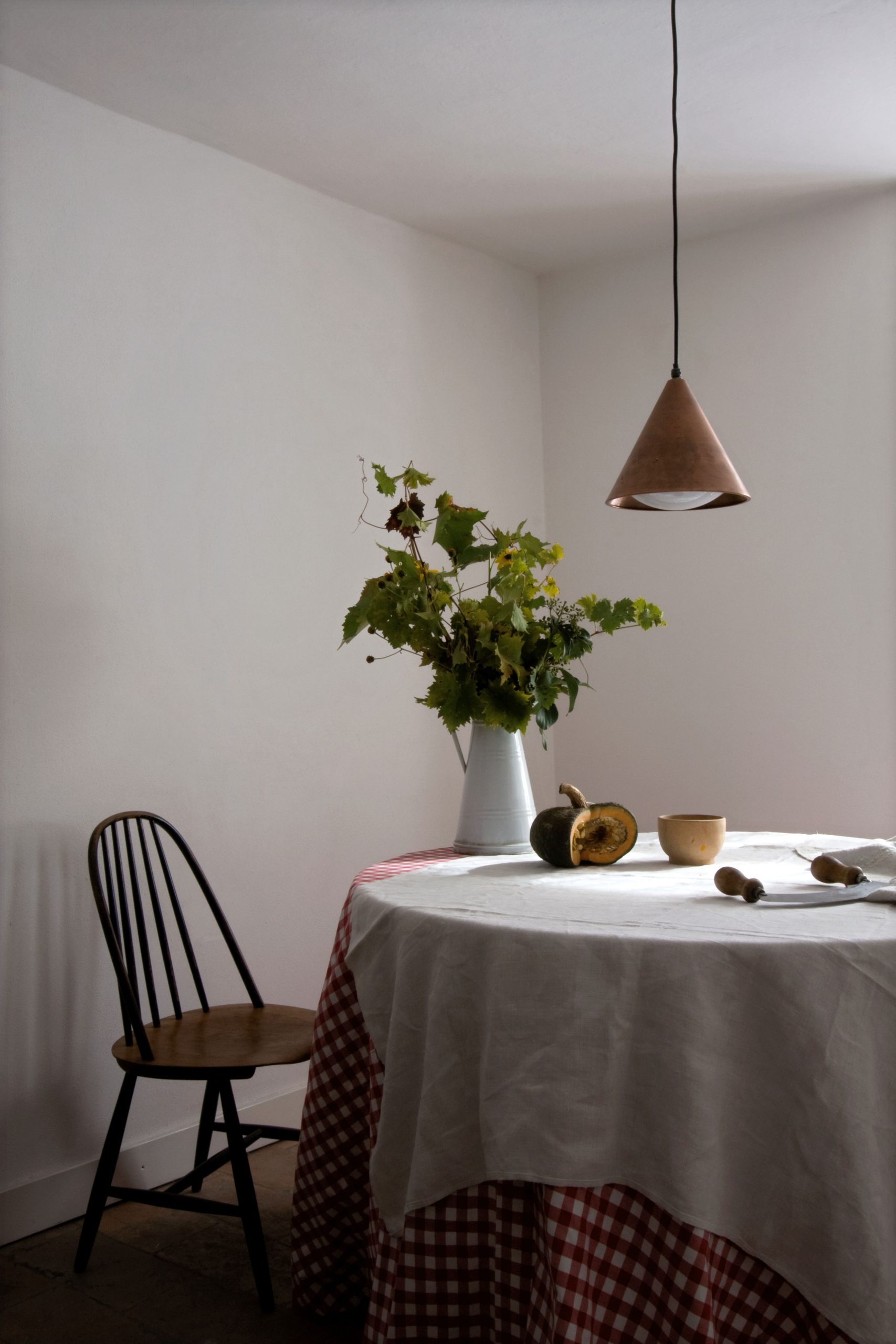 Per i corpi illuminanti è stato scelta una linea essenziale ed atemporale e il rame come materiale dominante.