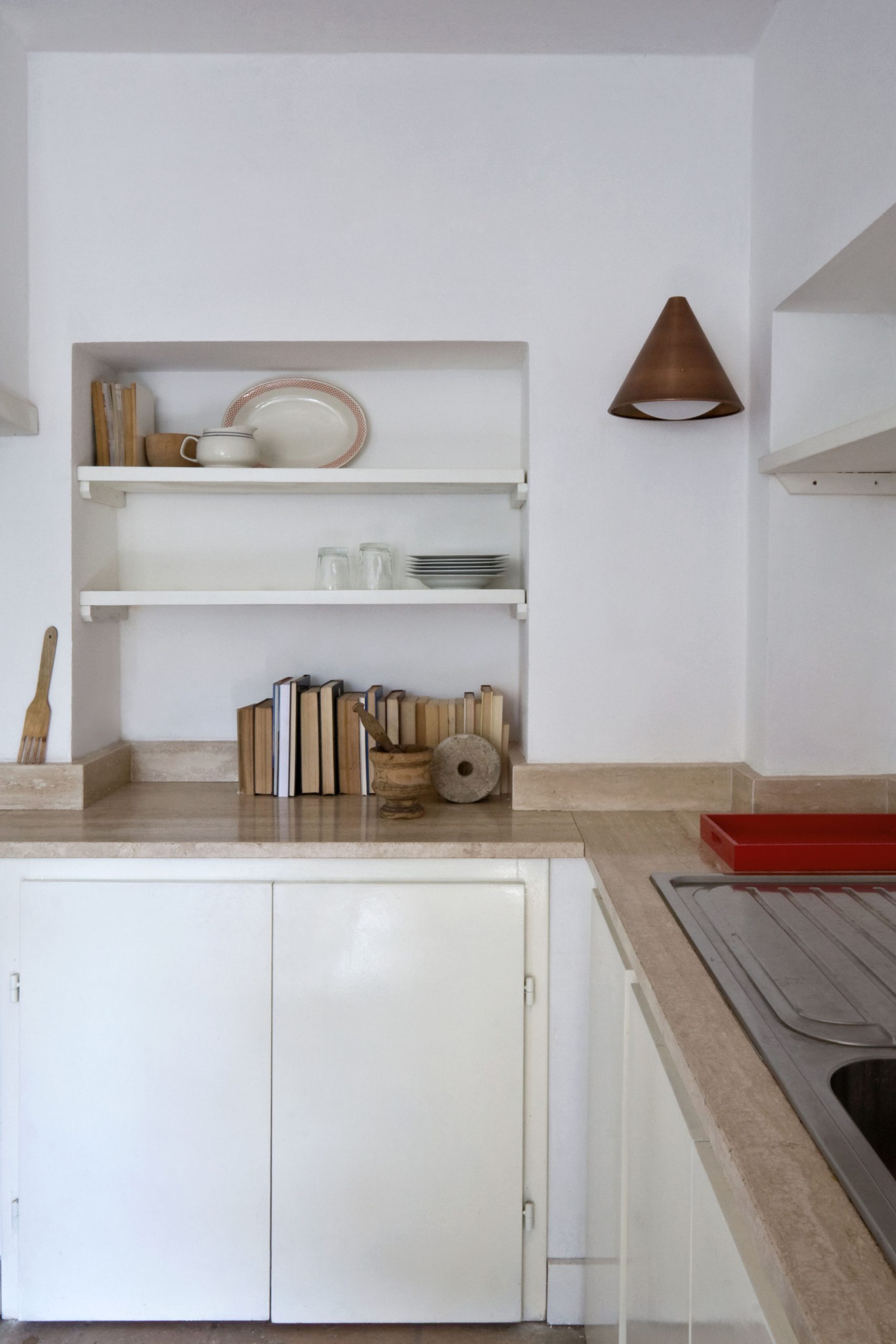 La natura antica della casa viene rispettata anche nelle scelte stilistiche: le porte sono incardinate con battente a muro, scegliendo di reinterpretare ferramenta e maniglie in ferro d’epoca.