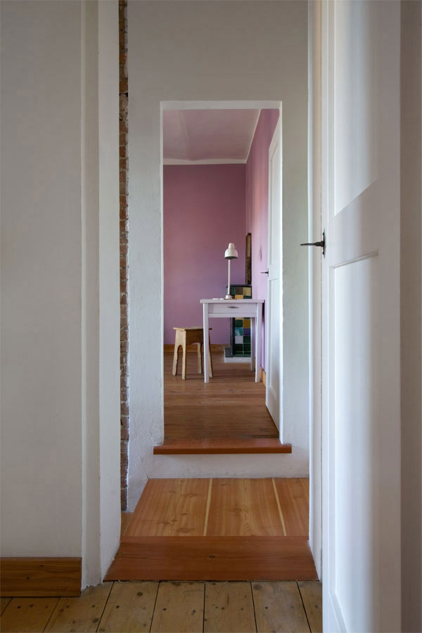 Una grande casa a corte risalente a metà secolo XIX, disposta su tre livelli, viene restaurata integralmente, facendo la scelta di assecondare la struttura a mura perimetrali e traverso interno portante per non snaturarne la forma e la distribuzione originaria, che prevedevano l’assenza di spazi di distribuzione a parte il collegamento verticale.